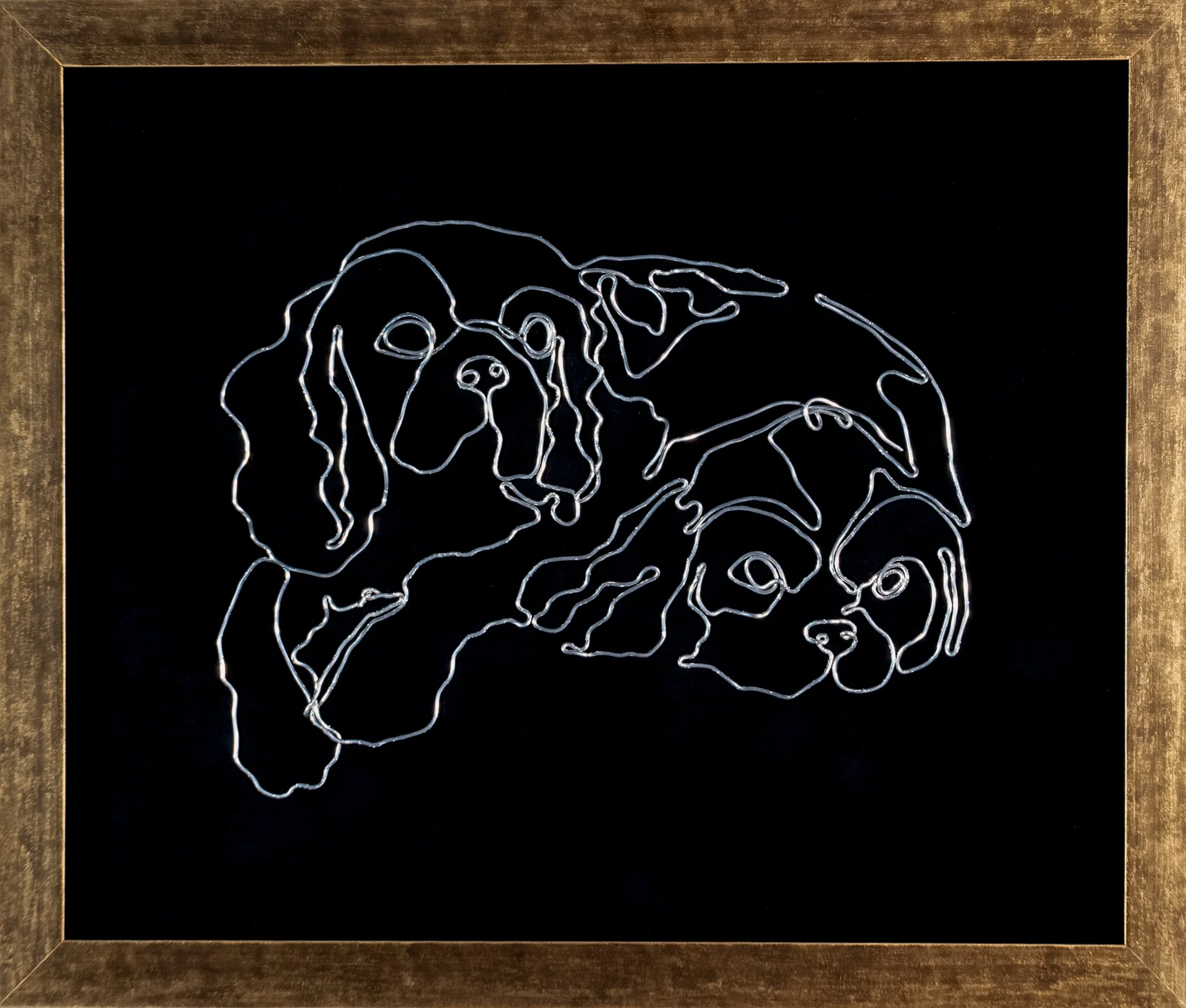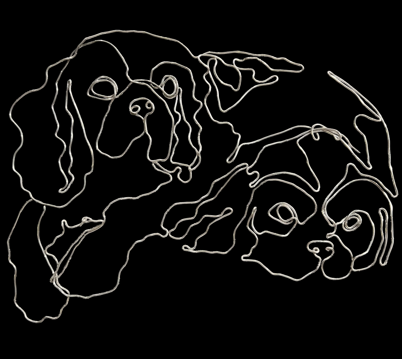 I chose to make this sculpture of my two dogs: Evie and Rose. I also decided to make this sculpture for my mom, whom the dogs love most. Working with wire was definitely more of a challenge than any other medium I have used. The wire often did not want to stay down. To combat this, I used some masking tape to hold down the parts I had finished. I ended up using around twice as much wire as I expected; one thing I would do differently next time would plan out how much wire and the path of my wire more efficiently. I feel like even though this sculpture was more of a challenge at times, it went pretty well. I feel like one thing that went well was that I was really able to capture the liveliness in the dogs' expressions and really capture what they are like in real life.
