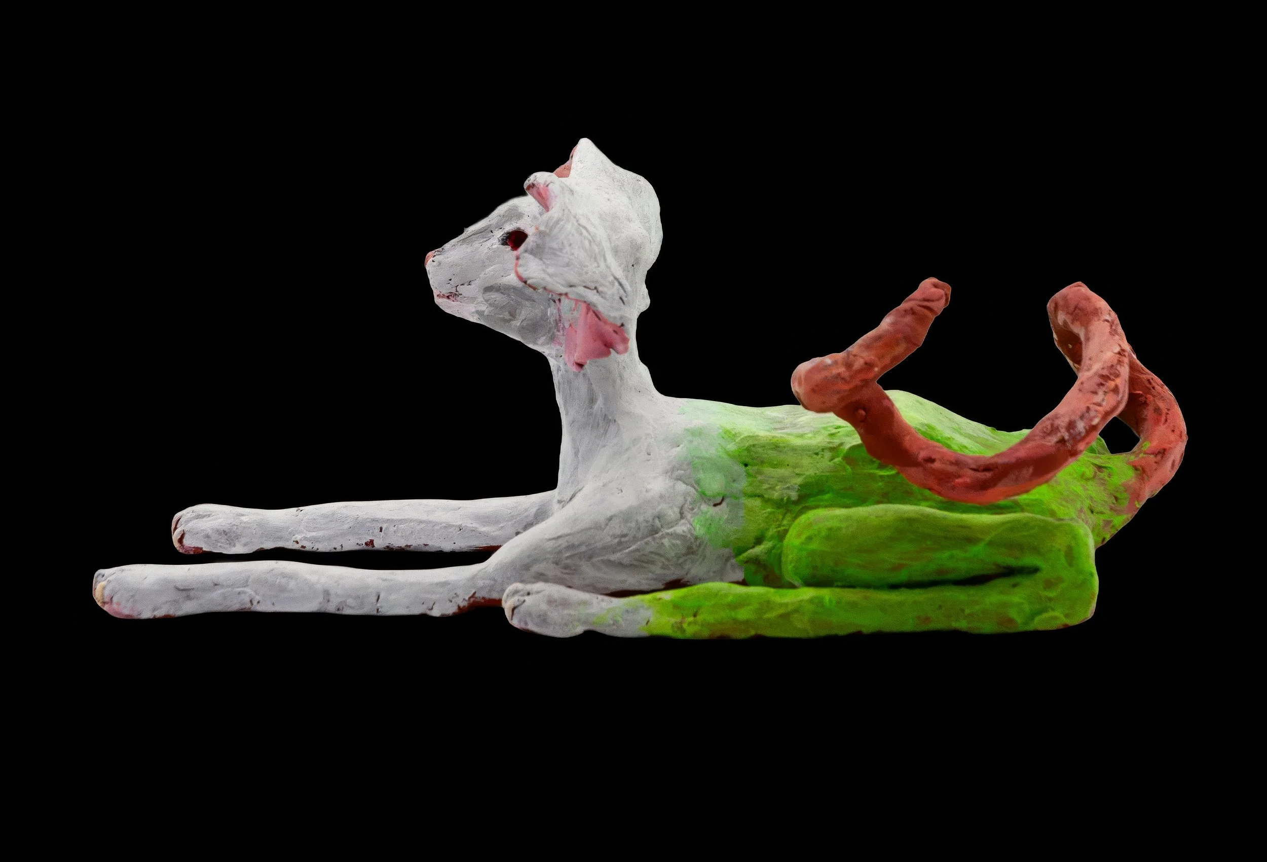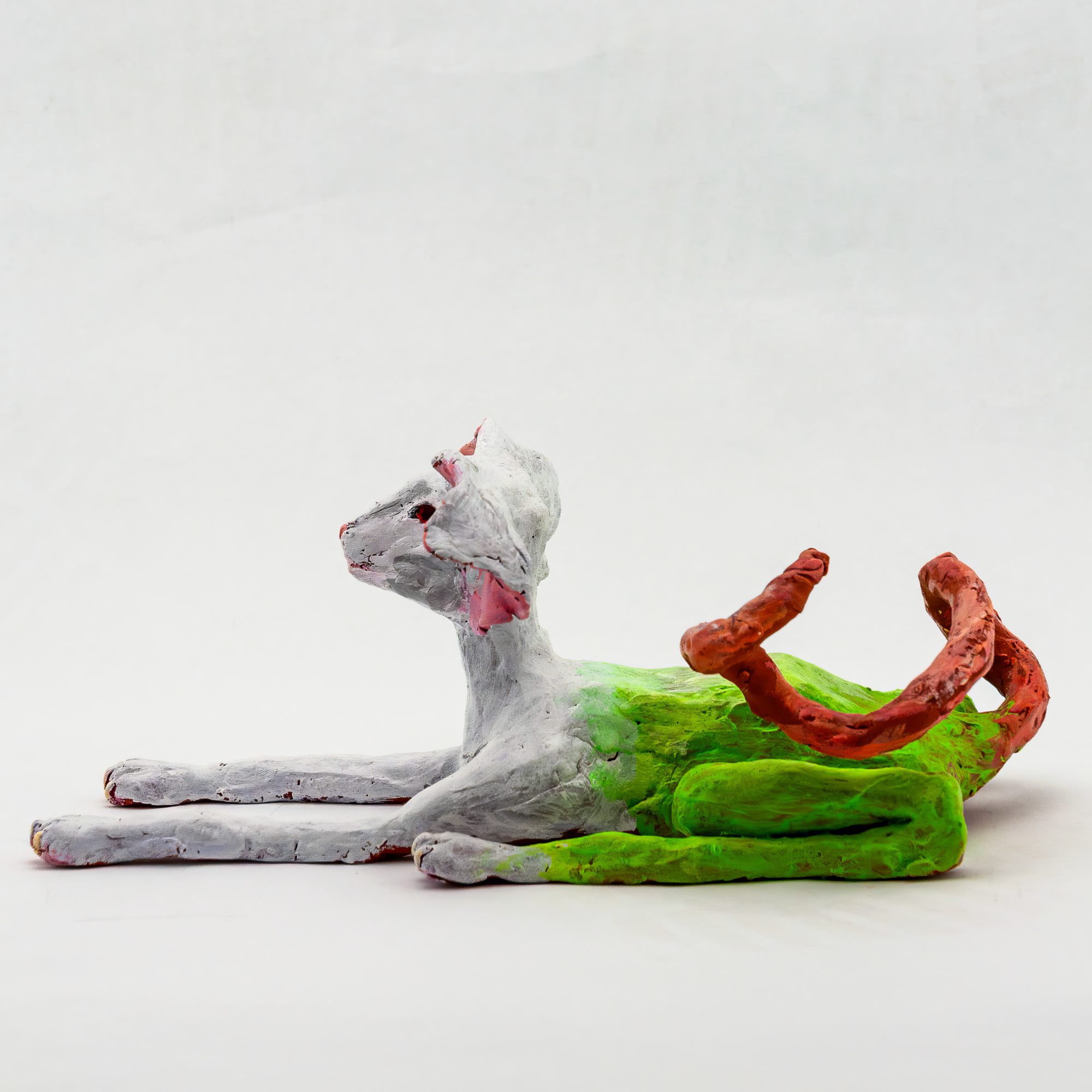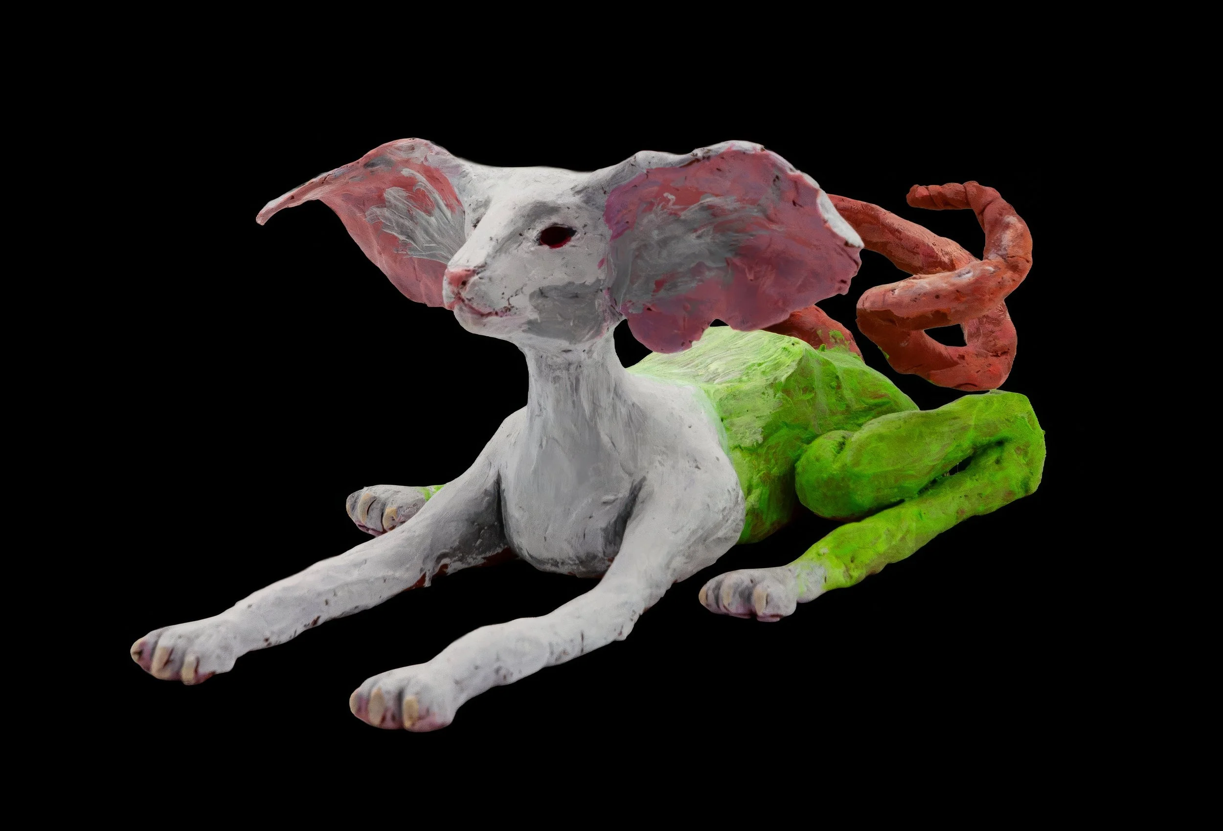 This sculpture, Gargoyle, draws inspiration from the mythical protectors found on cathedrals, which blur the boundary between animal and architecture. I wanted to capture both the playfulness and the watchfulness of a guardian figure by inventing a creature that feels both familiar and otherworldly. The exaggerated ears, elongated body, and curling tail push the form into abstraction while still suggesting movement and alertness.