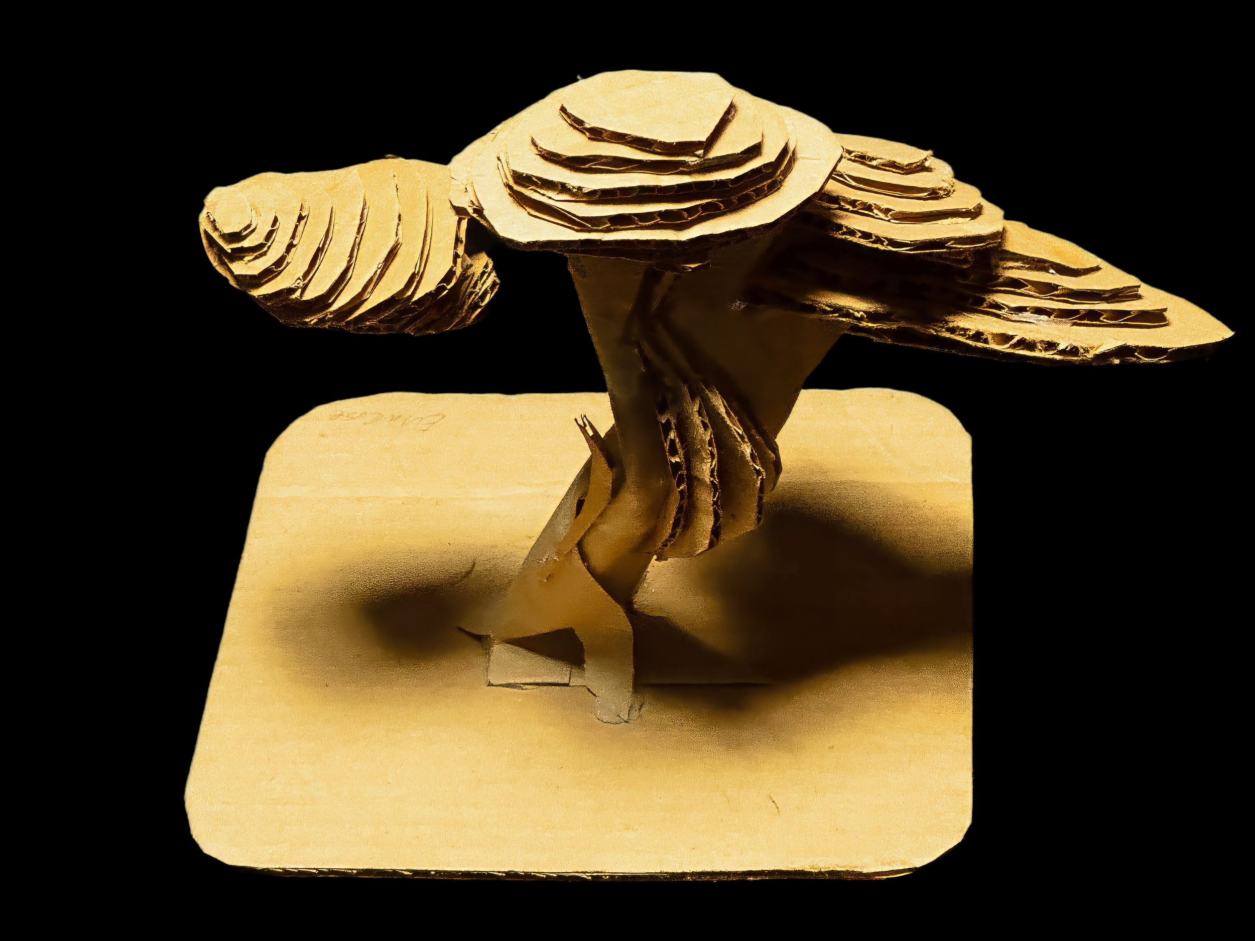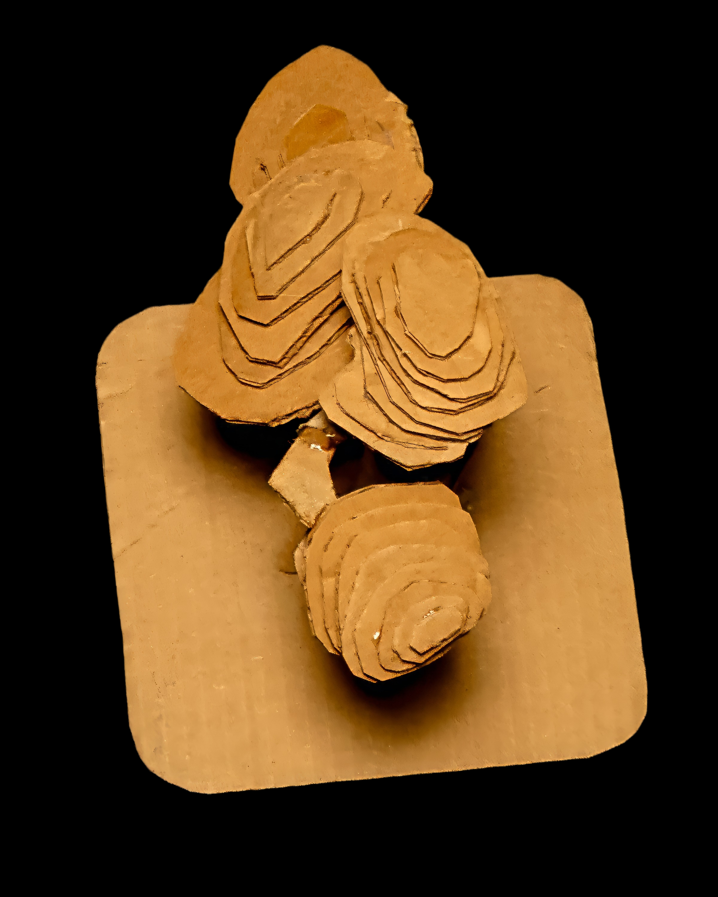 After creating some sketches for my bonsai tree, I got to work, creating a small base for my sculpture. I jumped right into making the base of the tree by using a paper towel roll, tearing it apart, bending it into the perfect life-like tree trunk, and hot gluing it into form. I added geometric pieces of cardboard to create the branches from there. I was originally thinking about using crumbled cardboard for the leaves, but I decided on a more abstract design instead, using geometric layers to create the dome shapes. I also used this geometric layering technique on one part of the trunk to create more emphasis on the flow and movement that I wanted the trunk to show. Throughout the whole process, I kept all of my cardboard scraps and repurposed many of them to add more detail to my sculpture. I decided to leave the cardboard showing because of how interesting the texture is and to help display the layers and dimensions in the cardboard. I loved creating this sculpture and it really made me think outside of the box and consider new ways to utilize cardboard and layers to create 3D forms.