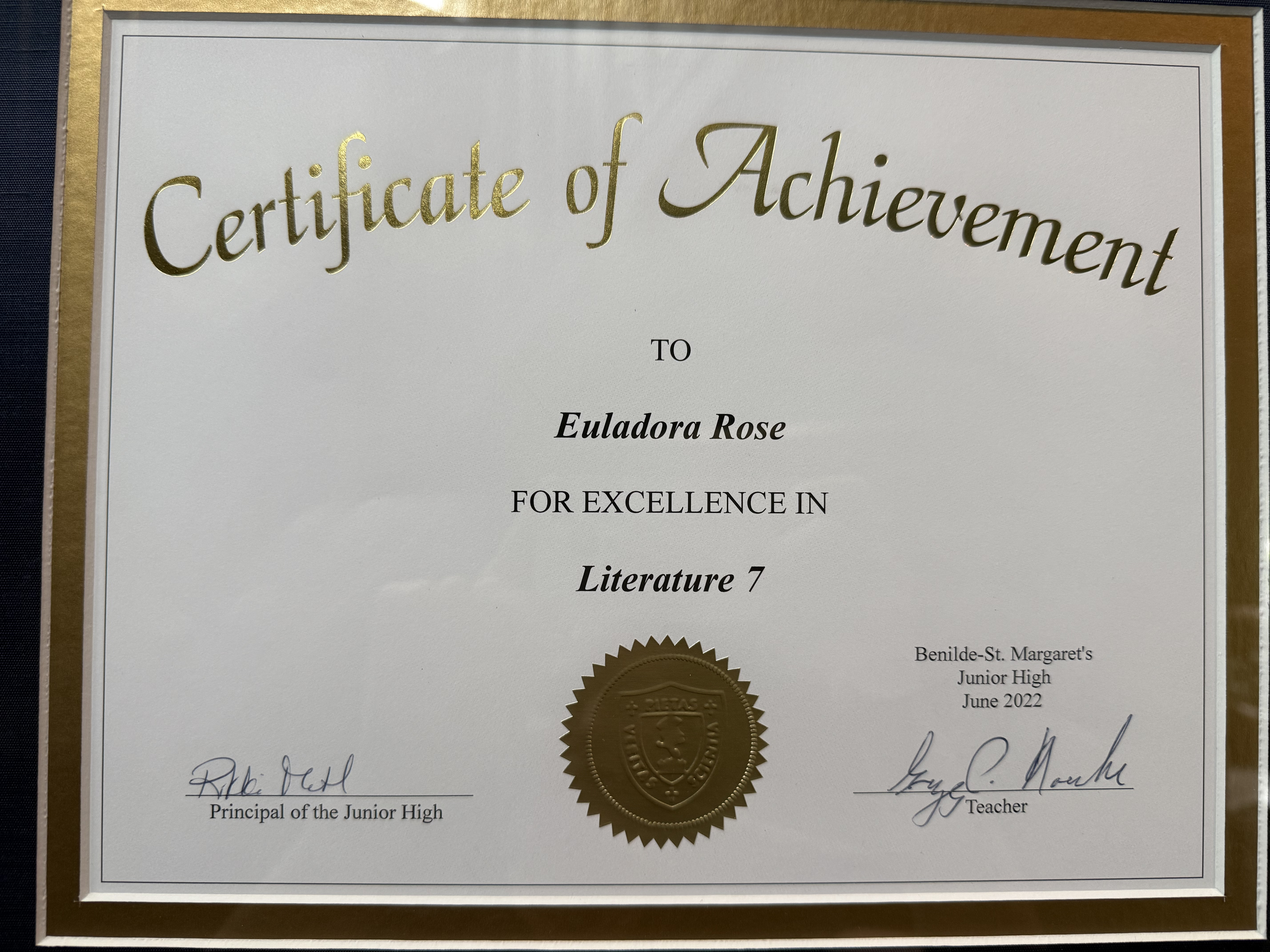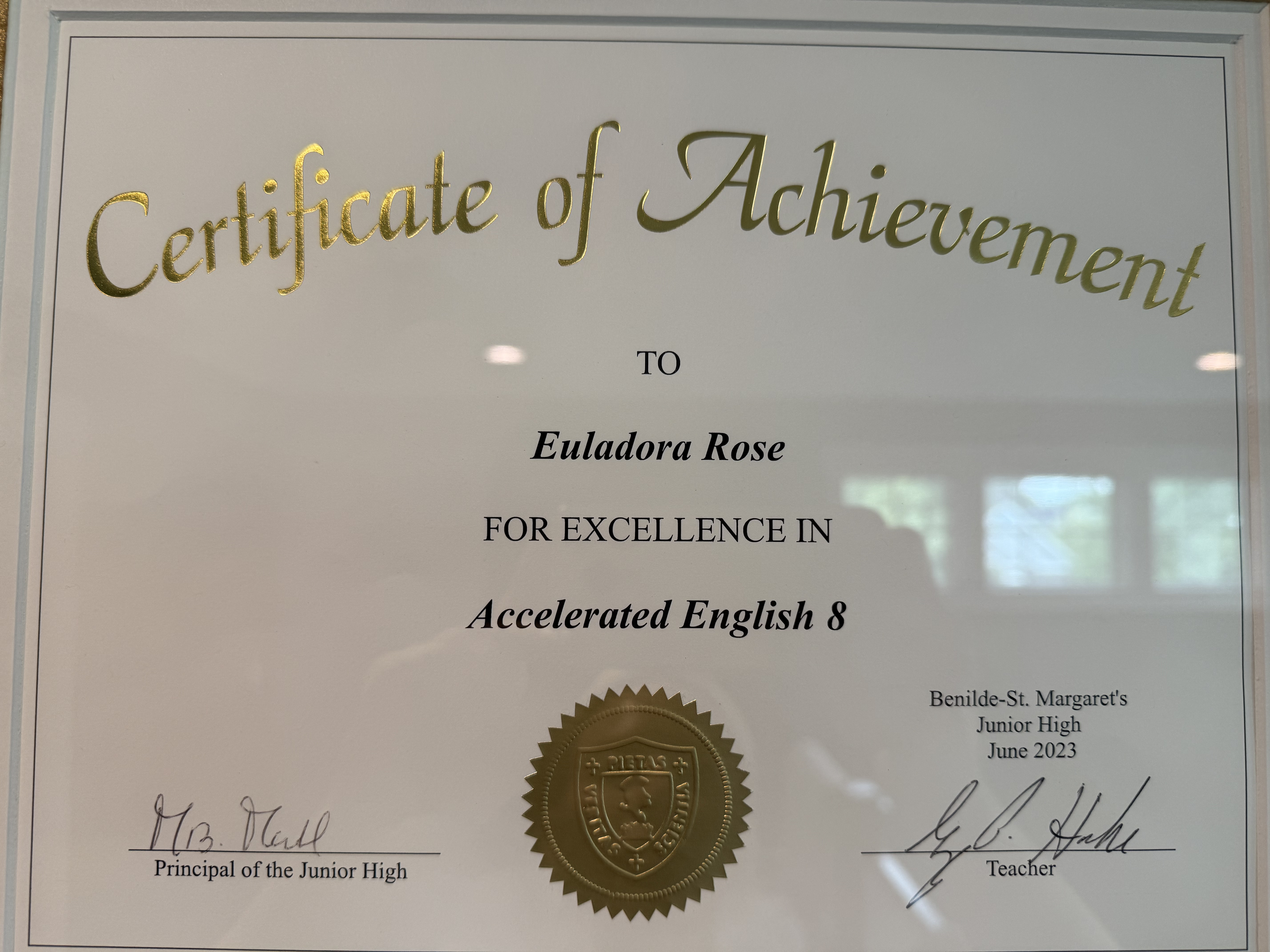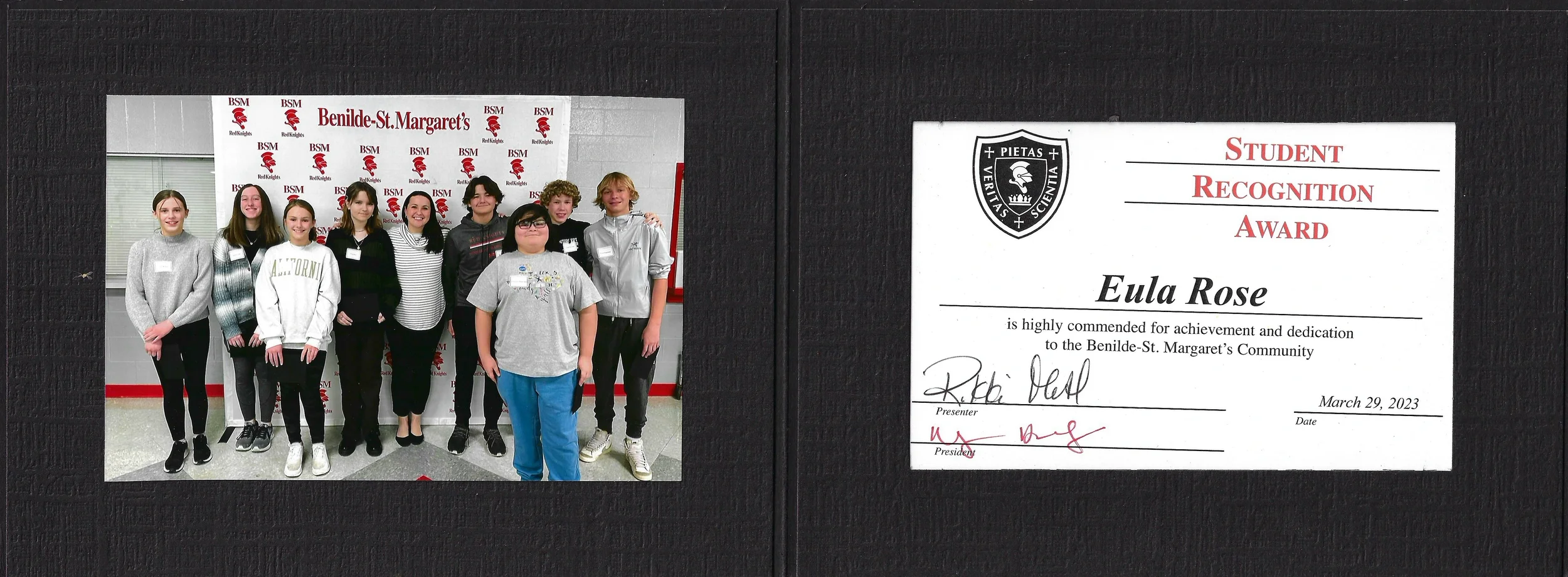 Induction into the NSHSS, representing Benidle St. Margaret's High School