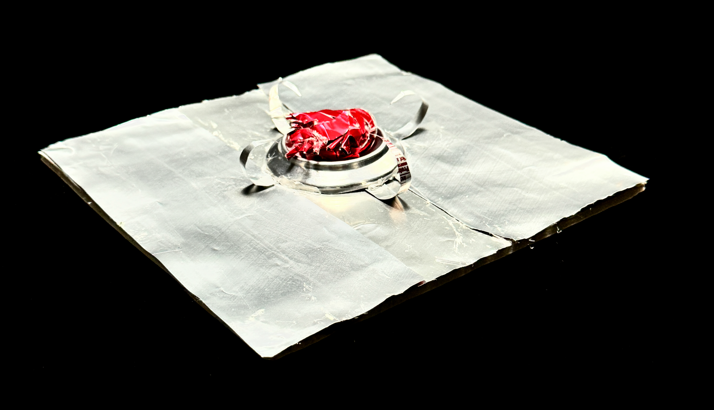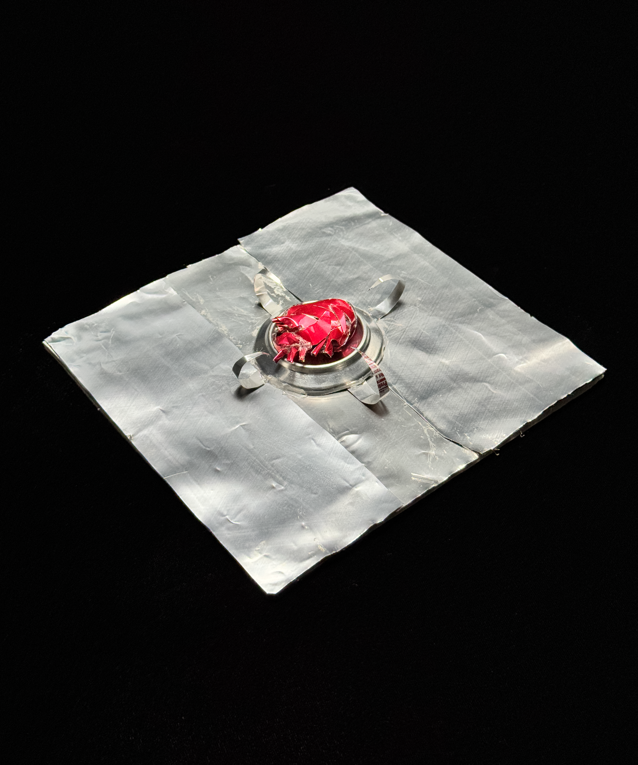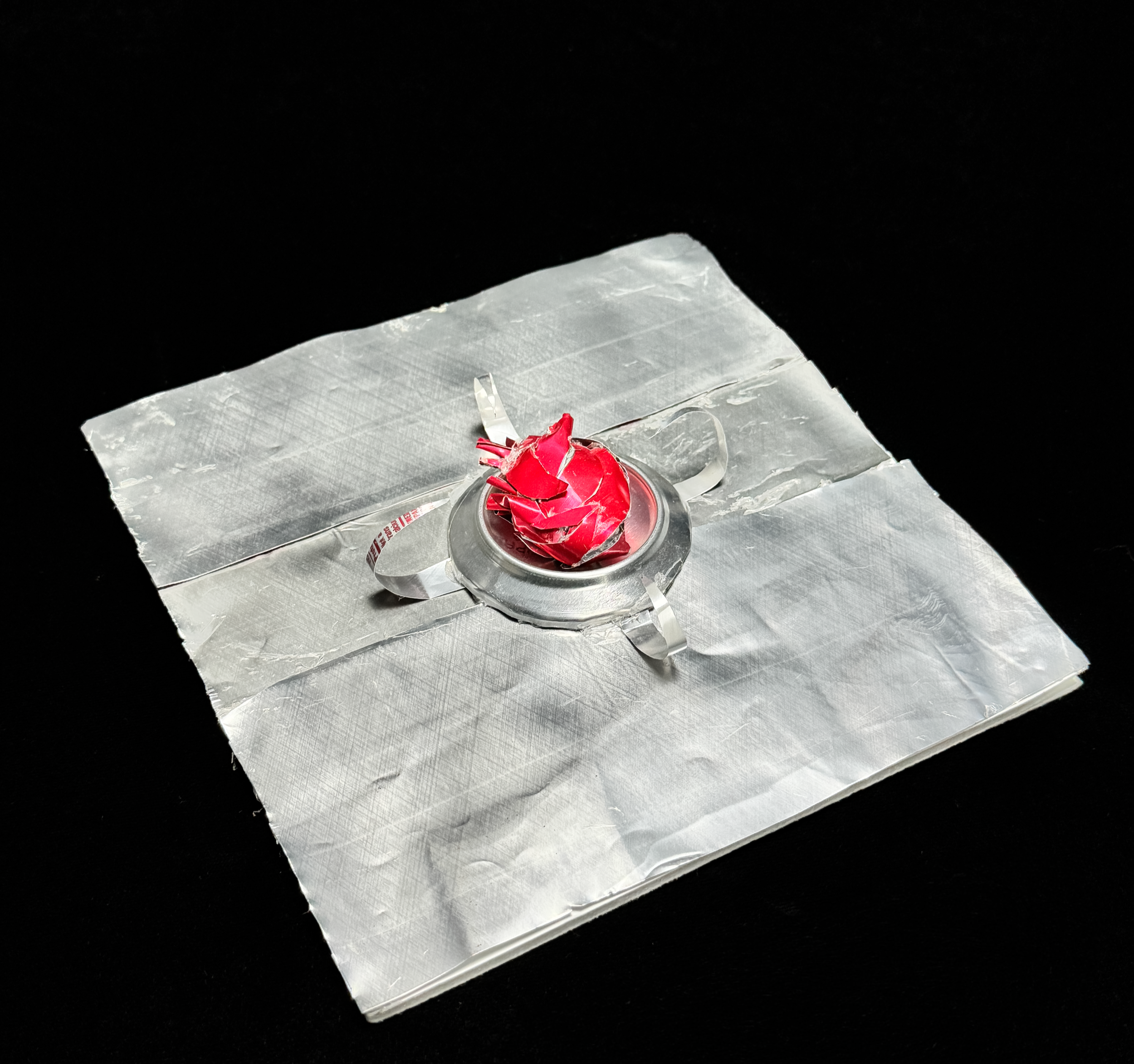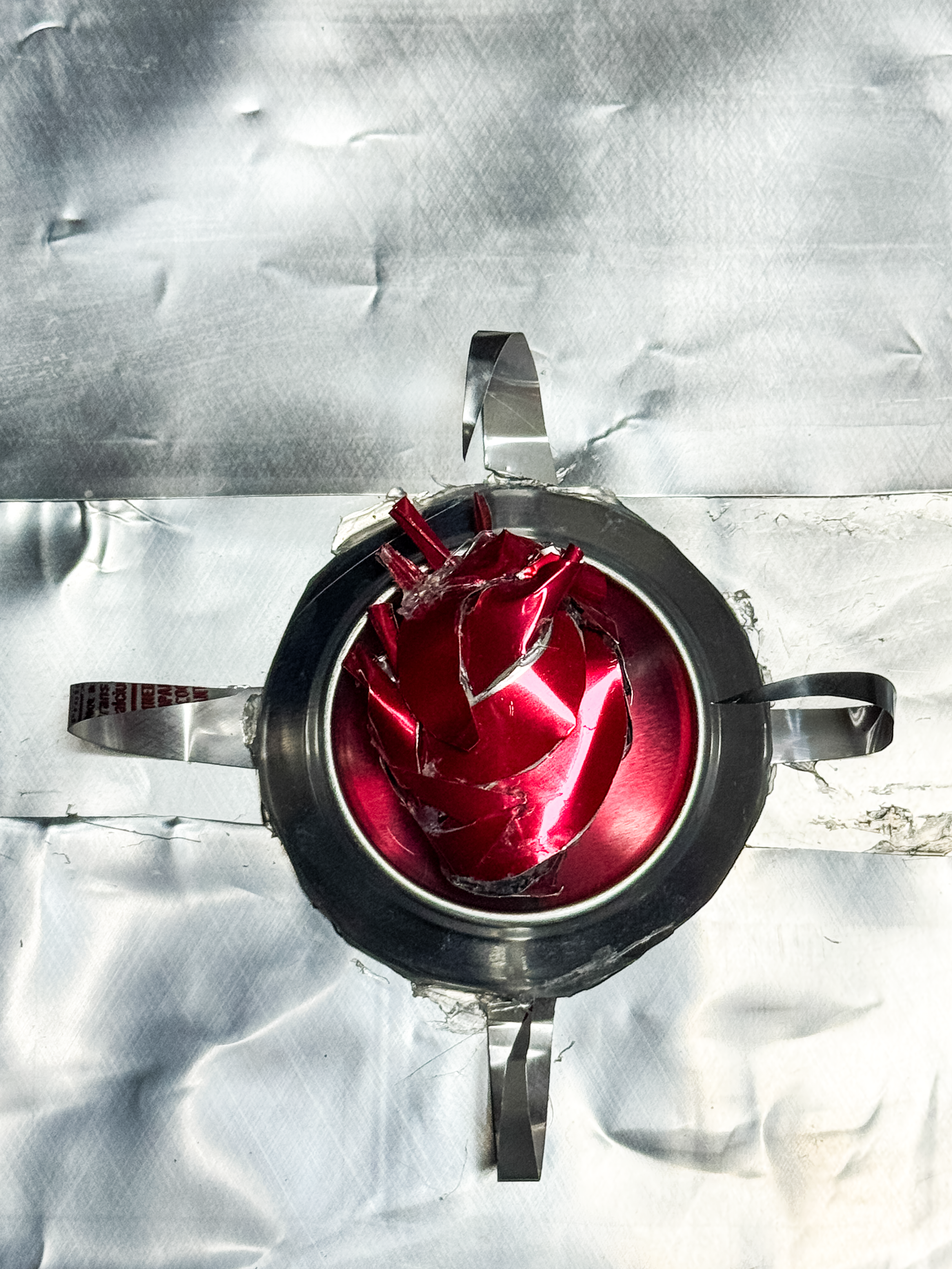 I also decided to use the bottom of a can to create a dish for the heart to sit in, so the heart could be freely moved in order to see the detail on all of its sides. The four metal spikes are also pointing and drawing attention to the heart, resembling a metal claw. My goal was to display emphasis through how our unique human souls stand out, full of life and spirit, compared to the uniformity that is often expected of us in the modern world. One thing I feel I did well was showing a lot of detail in the small heart (which is kind of hard to see in the photos because of all of the reflecting light), which was actually pretty difficult considering how complex human hearts actually are. One thing I feel like I could have done better is not have relied so much on glue to keep the heart together. I think it would have looked much cleaner otherwise.