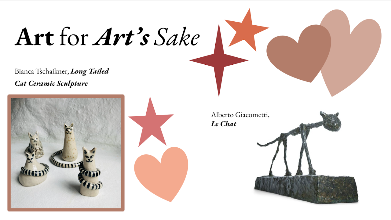 My Art for Art's Sake Sculpture: The goal for this sculpture was just to create art using our objects of something we were passionate about or interested in. I chose to create some fun adorable cats because cats are my absolute favorite animal and I have been making art of cats for as long as I can remember; they were on my mind recently from creating the wire cat culture as well as drawing a lot of doodles of the cat on the right. I was interested in trying some different techniques and styles of creating cats and exploring them in 3D. One thing I did well was use different unique shapes, textures, and features of the cans to create interesting cat features. For example, using the naturally bent parts from the bottom of the cans to create large ears. Another example would be using the soda tabs to create cat eyes. I also used a whole can as if the cat is hiding inside a trash can, a 'can cat' or 'cat can'. One thing I think I could have done better was create more mini-cats as well. I would have liked to create mini clone cat armies of both cats. I love mini things and it would have added more detail in the sculpture.